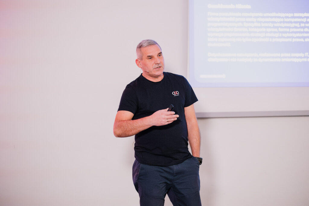 Our CEO, Jacek Zawadzki, presented how no-code solutions streamline IT project development and migration, focusing on a debt management system, key module creation, and product management support.