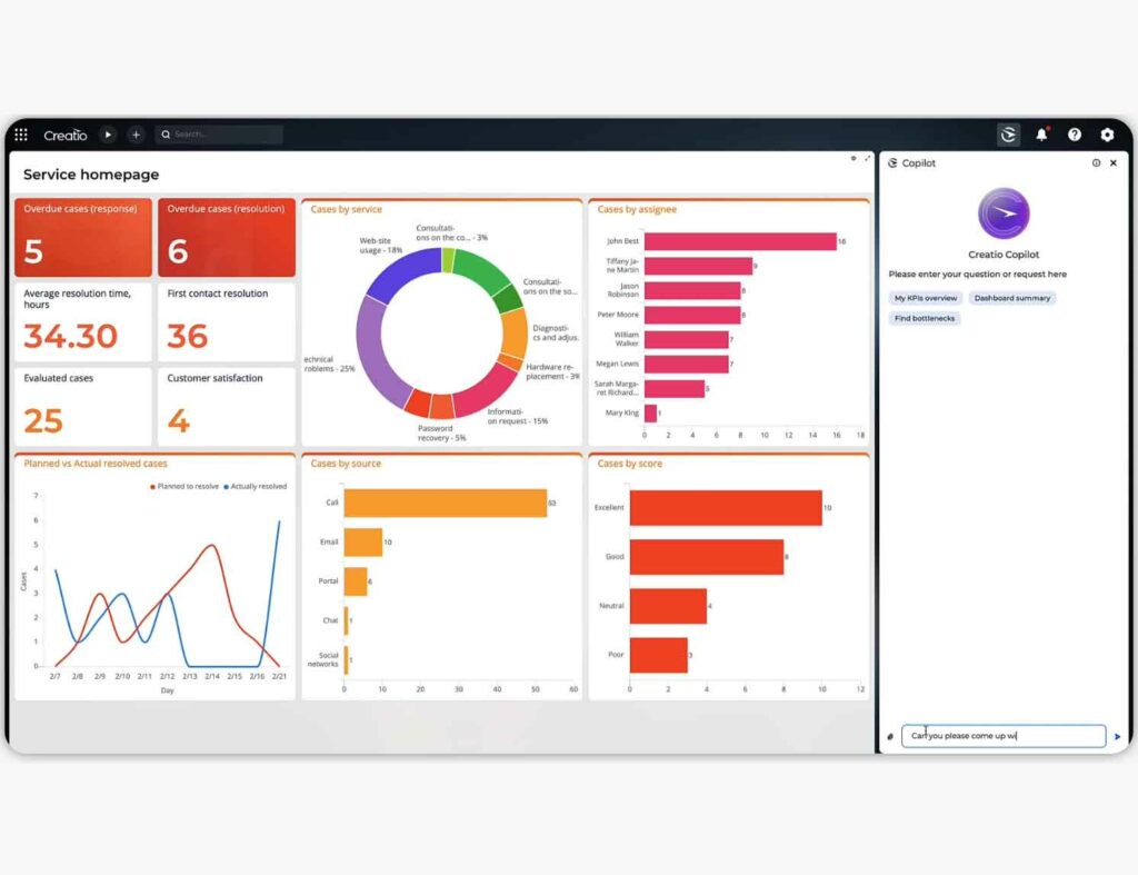 Dla agentów obsługi klienta Creatio Copilot może automatyzować zbieranie i analizę zgłoszeń od klientów z e-maili, określać ich pilność i kategorię oraz sugerować najbardziej odpowiedniego agenta do ich obsługi. Narzędzie wspiera także tworzenie empatycznych odpowiedzi, dopasowanych do preferencji i oczekiwań klientów.
